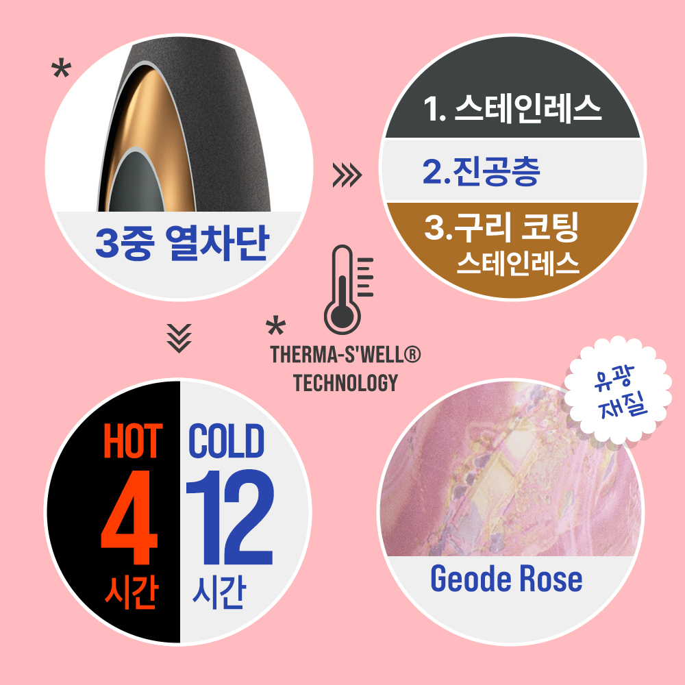 [봄격쇼핑]프리미엄 지오드 로즈 텀블러 530ml
